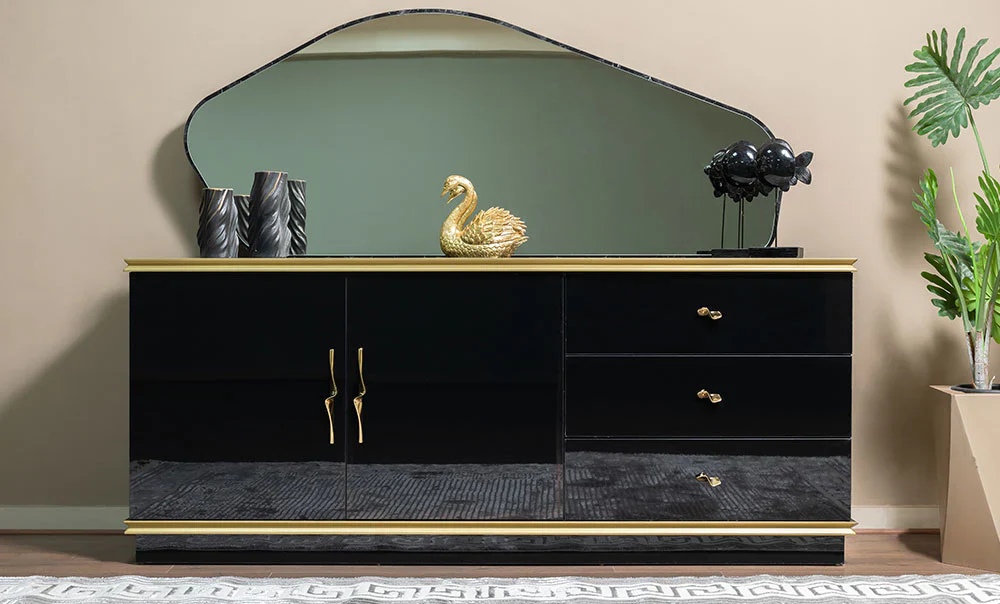 Buffet mirror: width 180 cm, height 75 cm
