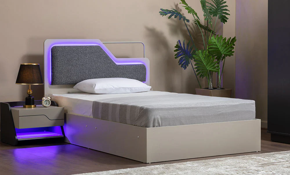 The bed is equipped with LED lighting and upholstery for complete comfort.