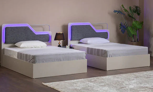 السرير مزود بإضاءة ليد مع التنجيد لإضافة الراحة الكاملة