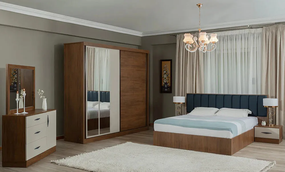 السرير: عرض 180 سم طول 200 سم - الدولاب: عرض 240 سم إرتفاع 220 سم عمق 65 سم